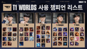 Worlds 2025を優勝したT1は、優勝トロフィーのほか、優勝を記念した限定スキンを各選手1チャンピオンずつ作成することができます。本稿では、優勝スキン作成のための条件と選手たちが選択予定のチャンピオンをまとめています。