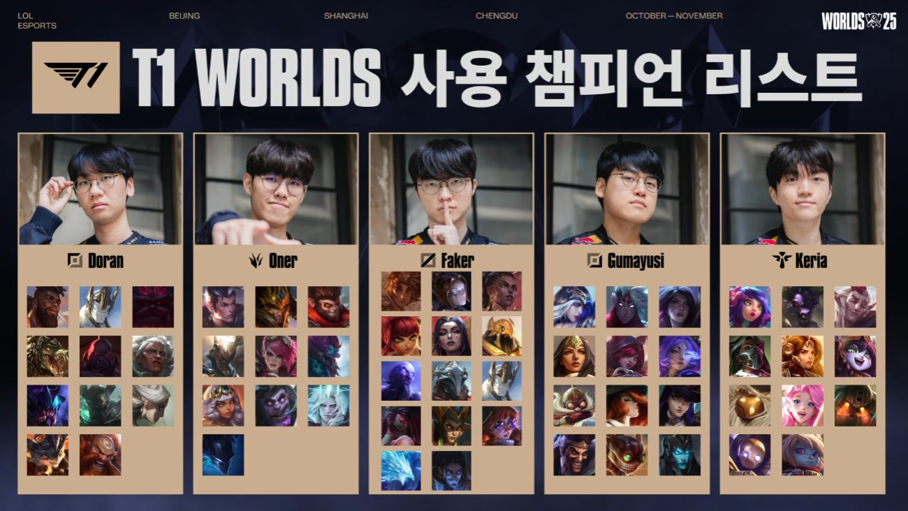 Worlds 2025 T1 優勝スキン:選択予定チャンピオン